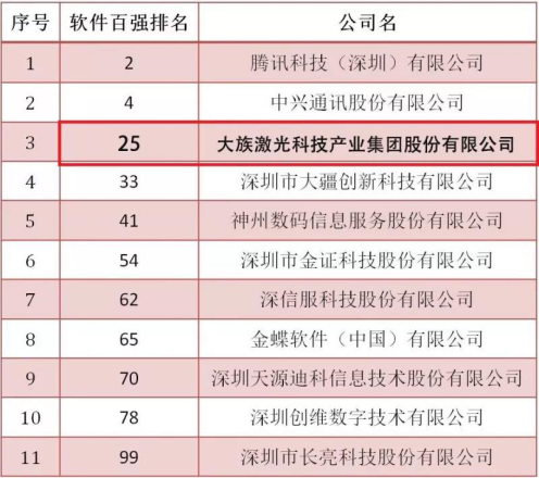 大族激光以第25名的排名,再次挺進中國軟件百強企業(yè)名單!