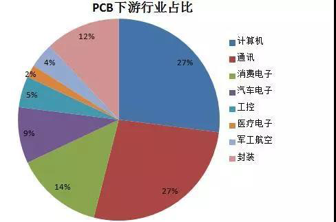 PCB行業的發展,同樣離不開下游行業的穩步提升。目前,PCB下游需求結構中,計算機、通訊合計占比超過50%,消費電子則占比14%。展望未來,5G、汽車電子、人工智能等行業快速發展均有望給PCB產業帶來需求提振。