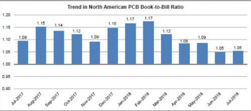 9月4日,美國伊利諾伊州班諾克本 — IPC — 國際電子工業聯接協會? 發布《2018年7月份北美地區PCB行業調研統計報告》。報告顯示7月份北美PCB訂單量和出貨量繼續雙雙增長。 訂單出貨比穩定在1.05。