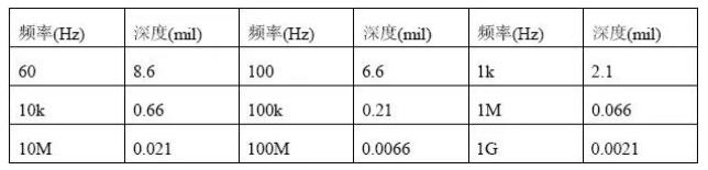 隨著信號的頻率越來越高,因趨膚效應造成信號在多鍍層中傳輸的情況對信號質量的影響越明顯: