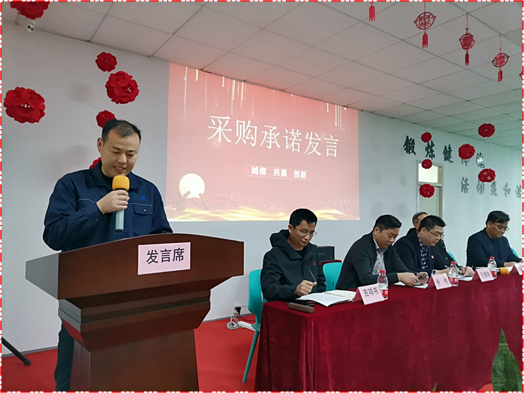 會上,根據公司2022年經營目標任務的分解和部署,總經理王德瑜同志與各部門負責人分別簽訂了《2022年度公司經營目標責任書》。簽約儀式完成后,總公司市場部主管孟艷艷同志、副總經理兼研發部經理吉祥書同志、總經理助理兼采購部負責人徐正保同志、生產計劃部經理夏杏軍同志、品質部經理熊小波同志、財務部經理朱婷紅同志分別作表態發言,鄭重承諾將全力以赴完成2022年本部門各項經營目標。