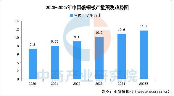 中國已成為全球最大的覆銅板生產國。中商產業研究院發布的《2025-2030年中國覆銅板市場調查與行業前景預測專題研究報告》顯示,2023年中國覆銅板產量約為10.2億平方米,同比增長12.09%,2024年約為10.9億平方米。中商產業研究院分析師預測,2025年中國覆銅板產量將增長至11.7億平方米。