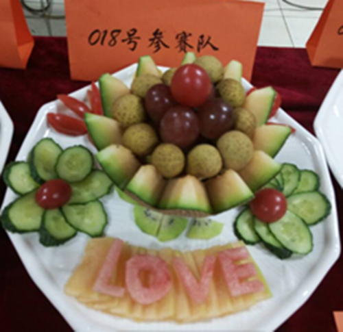 作為公司品質部的一支團隊,我們積極參與。我們的參賽隊伍名:萬正一心,參賽作品是《滿滿的愛》。我們選用的水果有:哈蜜瓜、圣女果、葡萄、桂圓等。首先我們將哈密瓜做成一個搖籃形狀,象征著萬正大家庭;然后,我們把精心挑選的小水果滿滿的放在哈密瓜里,小水果們代表萬正的每一位成員。在我們分工合作,齊心協力的努力下,“滿滿的愛”——美麗的心靈花園滿完成了。在主持人宣布時間結束后,大家把各自的作品小心翼翼的捧到評委臺上等待投票。臺上的作品各有各的創意,色彩繽紛,令人眼花繚亂。經過幾個輪回的投票,結果終于知曉。我們隊很榮幸獲得了二等獎。聽到這個結果,我們全體成員內心激動,興奮不已。