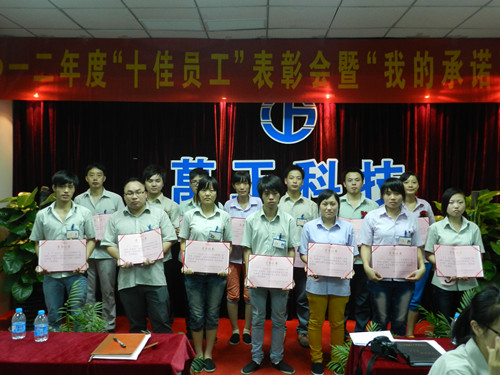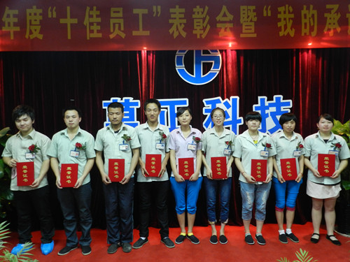 2012年04月-06月期間,公司開(kāi)展了年度“十佳員工”的評(píng)選活動(dòng),經(jīng)各部門組織推薦和“十佳員工”評(píng)委會(huì)的討論決定,分別產(chǎn)生了10名“十佳員工”和10名“表?yè)P(yáng)人員”。在表彰會(huì)上,王副總宣讀了《關(guān)于二O一二年度“十佳員工”及表?yè)P(yáng)人員的表彰決定》。接著,他與行政保密部經(jīng)理葉秀華分別為“十佳員工”、表?yè)P(yáng)人員頒發(fā)了榮譽(yù)證書(shū)、獎(jiǎng)品、獎(jiǎng)金,以資鼓勵(lì)。面對(duì)榮譽(yù),“十佳員工”與表?yè)P(yáng)人員笑靨如花,胸口的紅玫瑰也黯然失色了。對(duì)于他們來(lái)說(shuō),在萬(wàn)正這片沃土上,他們平日里的辛勤的汗水,在今天終于長(zhǎng)成一片豐收的“莊稼”。今天是一個(gè)豐收的日子!
